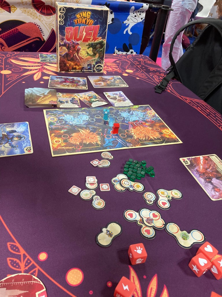 Parmi les nombreux jeux joués, mon coup de cœur se porte sur un jeu de la maison d’édition Iello : king of Tokyo duel.