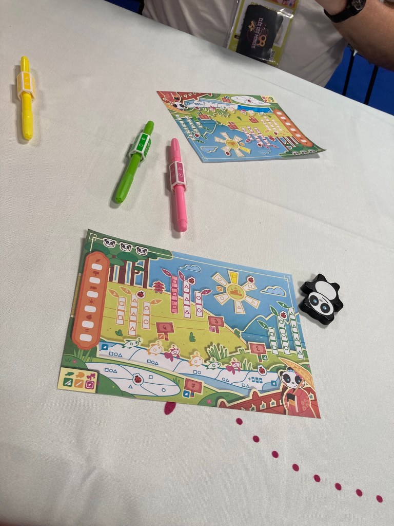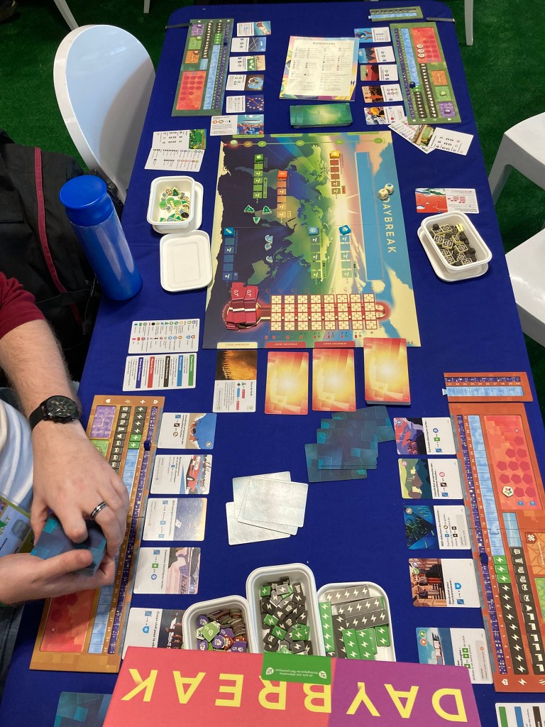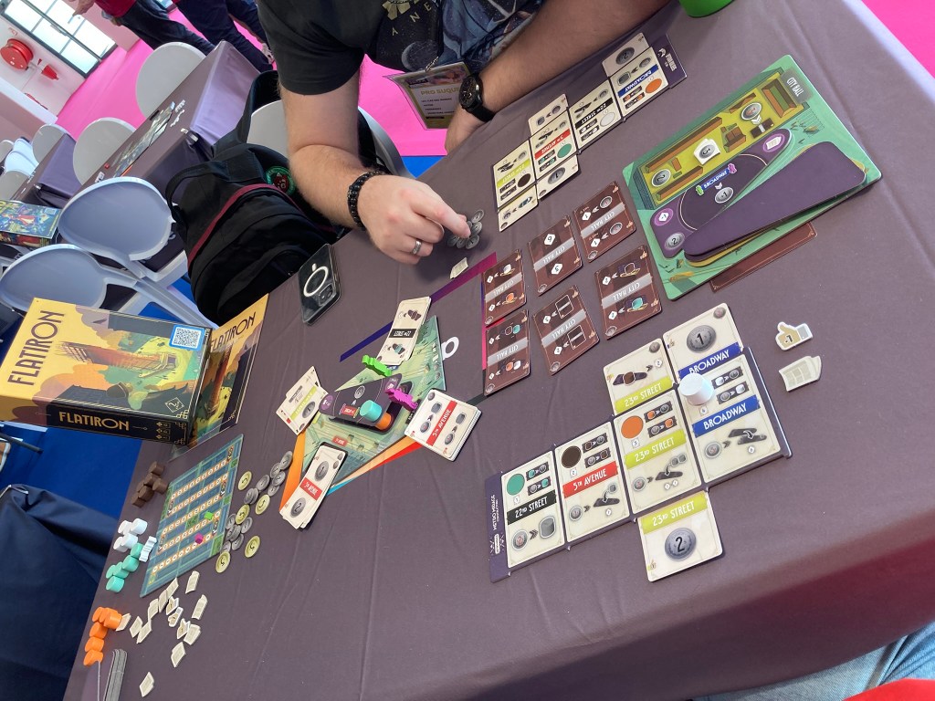 Nous sommes tombé sur ce jeu par hasard en nous baladant sur le stand d’Asmodee mais ça a été une agréable surprise et nous avons passé un bon moment. Ce n’est pas réellement notre style de jeu, mais, il faut avouer que c’est plein de bonnes idées et c’est très sympa de voir le bâtiment se construire au fil de la partie.
