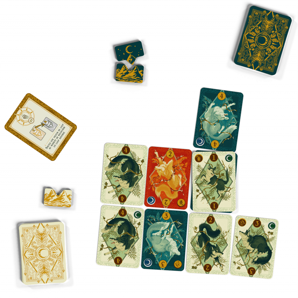 Les points sont ensuite comptés et le joueur avec le plus de majorité gagne la première manche. Le joueur gagnant va pouvoir choisir une carte « loup solitaire » supplémentaire et l’ajouter à son paquet de cartes quant à son adversaire, il va pouvoir choisir une carte « pourvoir d’alpha » (chaque carte à un pouvoir) et la placer devant lui.